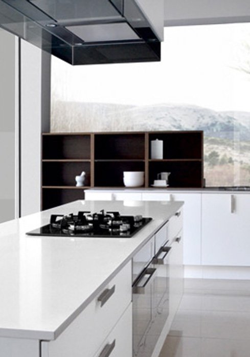 Johnson Amoblamientos propone otorgarle una estética personal al modelo, que abre una amplia posibilidad de diseños en torno al espacio de la cocina. Las combinaciones del perfil City color Onix con las melaminas textura madera y las superficies RPT de colores lisos y maderados de la colección 2014, exhiben una atmósfera especial, con nuevos acentos refinados en los encuentros de las piezas.