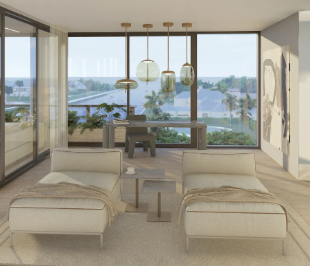 Para este espacio, la Arq. Viviana Melamed proyecto un espacio claro, liviano, abierto, integrado, interconectado, sostenible, con resoluciones puras, naturales, sofisticadas y de alta calidad para la vida cotidiana de los habitantes de este complejo residencial de muy alta gama.