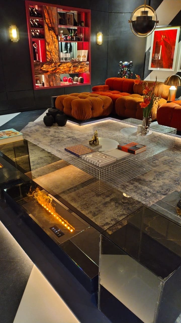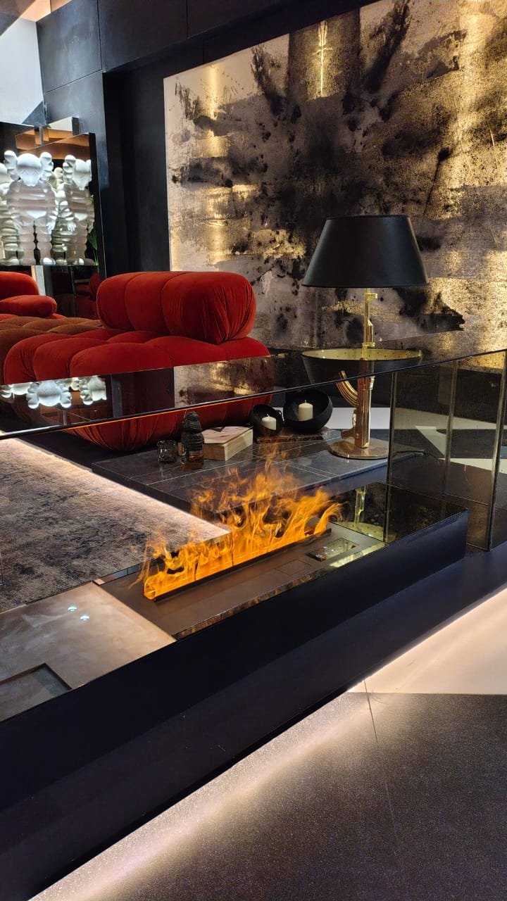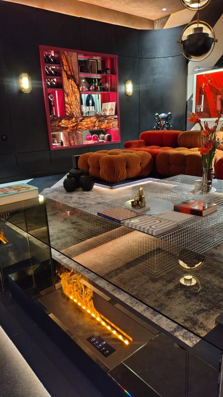 El ambiente, concebido como un lugar de encuentro y disfrute sensorial, combina arte, música y diseño bajo una estética maximalista. Las chimeneas decorativas de Ecofuegos se convirtieron en el corazón del espacio, aportando calidez, movimiento y elegancia.