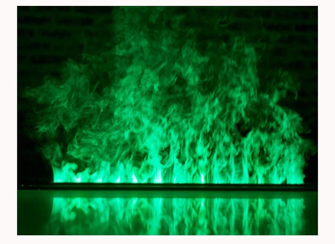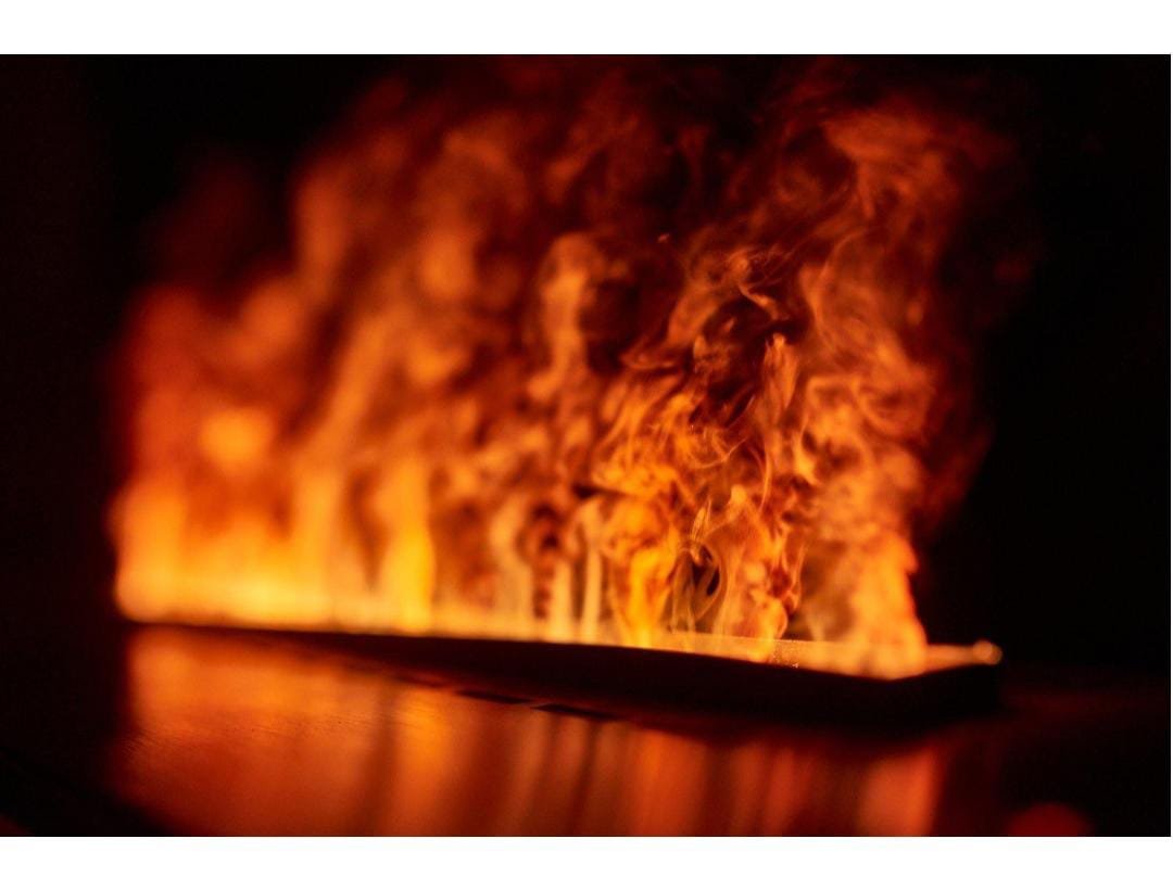 Las llamas son frías pero tienen un aspecto perfectamente real. Incluso puede ajustar la altura, la velocidad y el color. Se componen de nubes muy finas de vapor de agua iluminadas por luces LED.