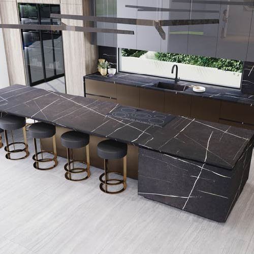 “Nuestra mesada para cocina estaba hecha en Dekton, color Kelia, un tono marrón con una veta blanca”.