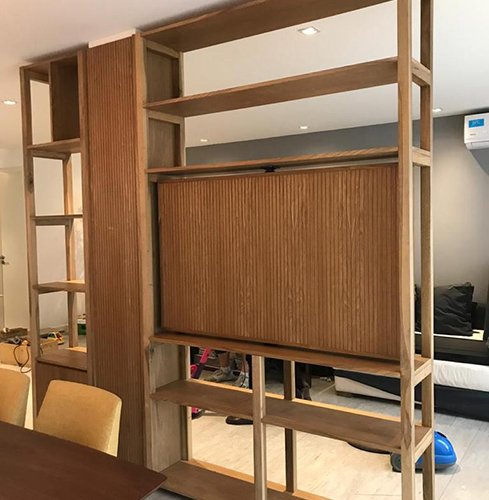 Carpintería Barragán realiza a medida un mueble de diseño para un living.