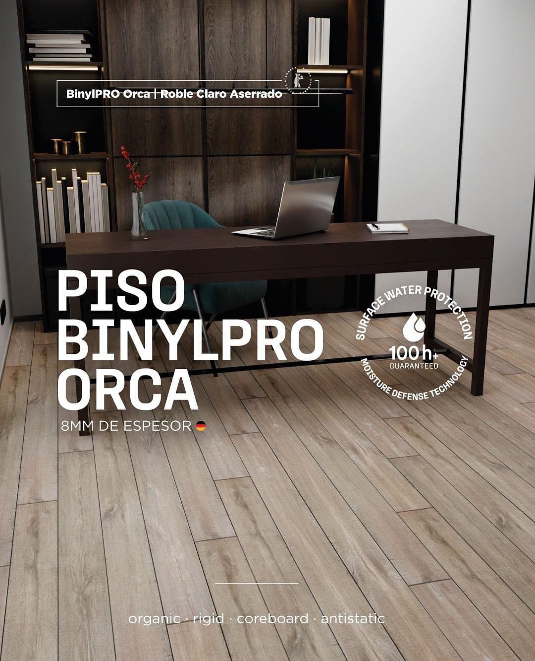 Pisos Alemanes, la firma que comercializa pisos BinylPro de alta gama, presenta su nueva colección para uso residencial de ORCA en tono Roble Claro Aserrado.