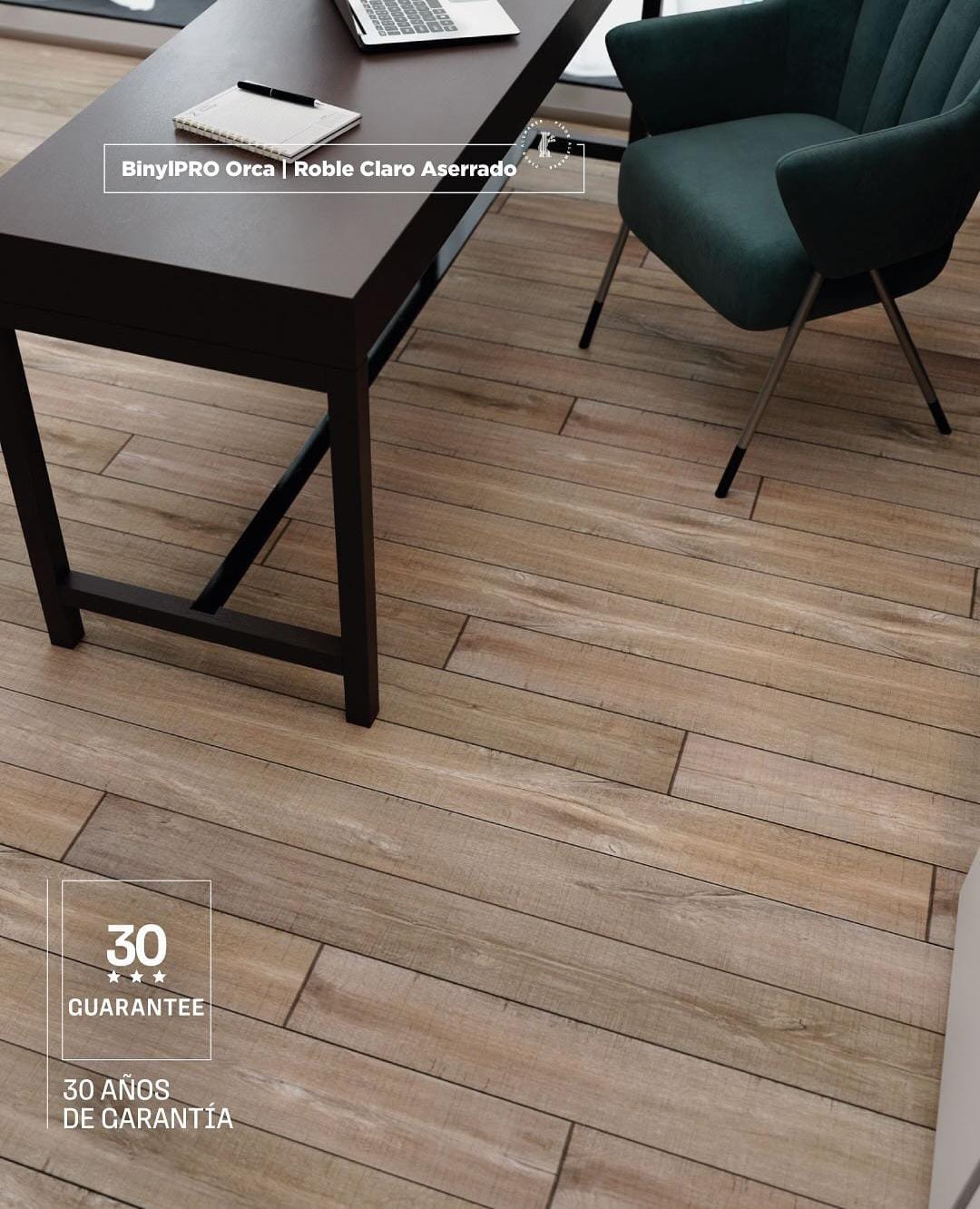 Los pisos BinylPro Roble Claro Aserrado, es solo uno de los más de 30 colores que tiene Pisos Alemanes de BinylPro.