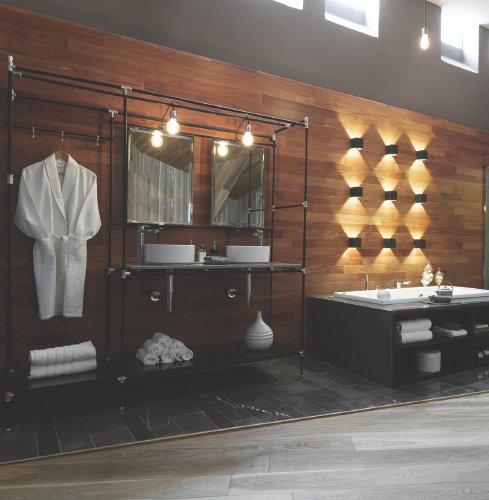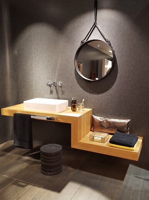 «Diseñamos y materializamos la renovación de imagen y funcionalidad de un piso de las Torres Quartier de María.» Uno de los detalles a destacar fue convocar al artista plástico Ramón Moller para la transformación de las paredes del toilette al cual le hicimos una terminación de patinado y esfumado. También nos ayudó con el cambio del hall del piso realizando una laca japonesa a la puerta principal.» nos cuenta Virginia Di Leoni.