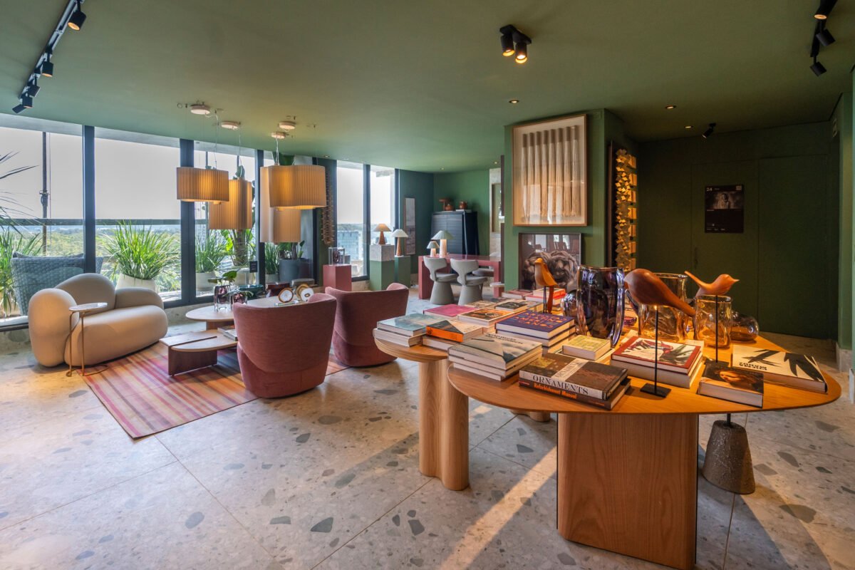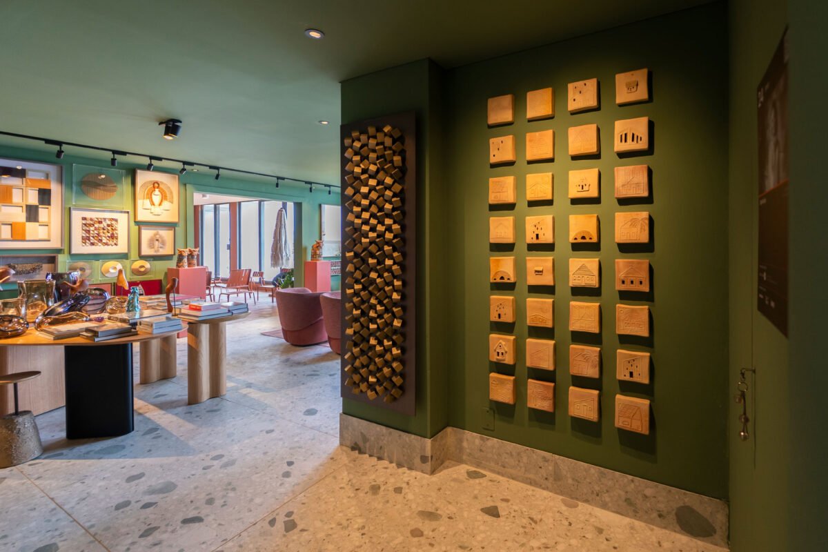 Un shop donde los objetos de Colección Sur aportan el toque final para cualquier casa. Piezas de diseño que conviven en armonía dentro de un entorno sereno y fresco, donde los tonos verdes envuelven al visitante en una atmósfera natural y continua.